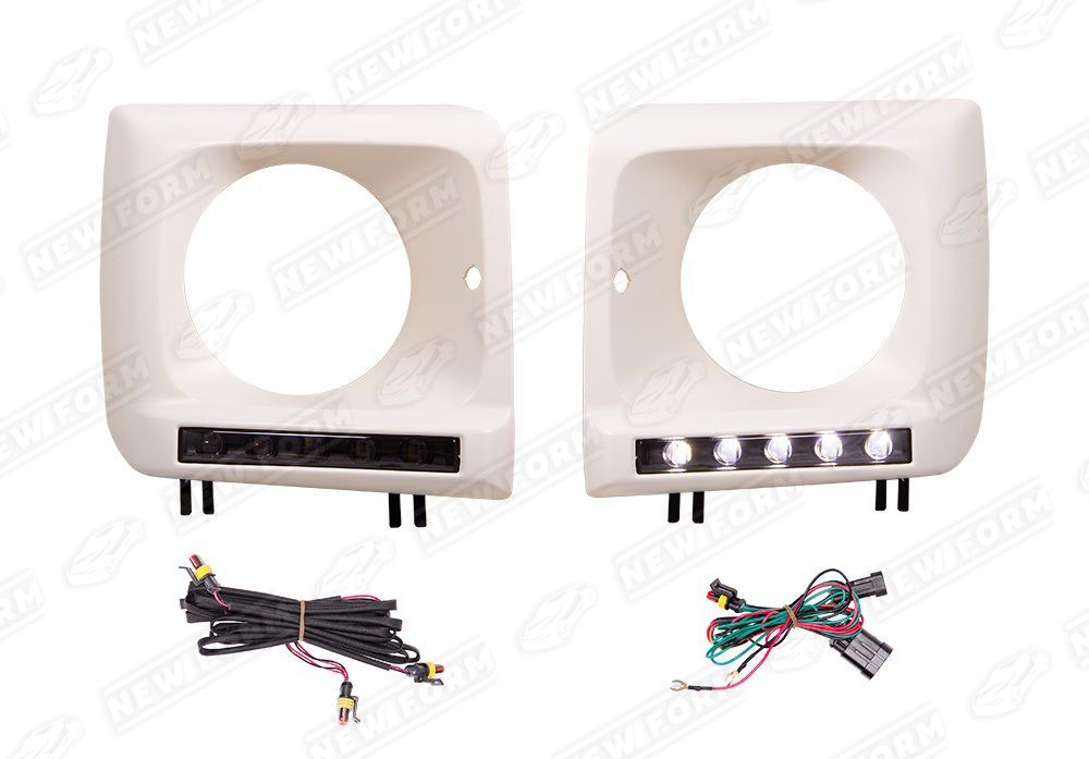 В комплект входит: две накладки вокруг фар "очки", ходовые огни, крепежные элементы.