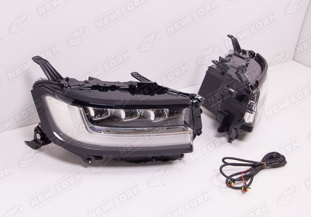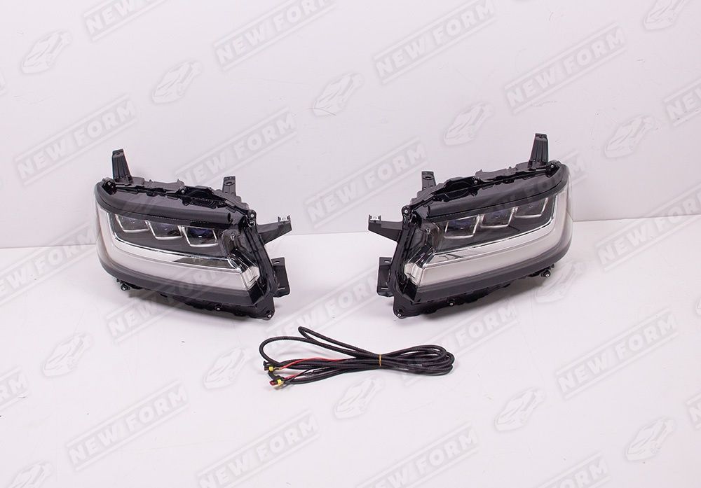 Передние фары с логотипом для автомобилей Toyota Land Cruiser 300. Данный комплект передних фар предназначен для установки на автомобили Toyota Land Cruiser 300 с 2021 года выпуска. Передние фары устанавливаются четко в штатные места автомобиля без доработок. Проводка, необходимая для подключения передних фар, входит в комплект. На фары нанесен логотип Land Cruiser.