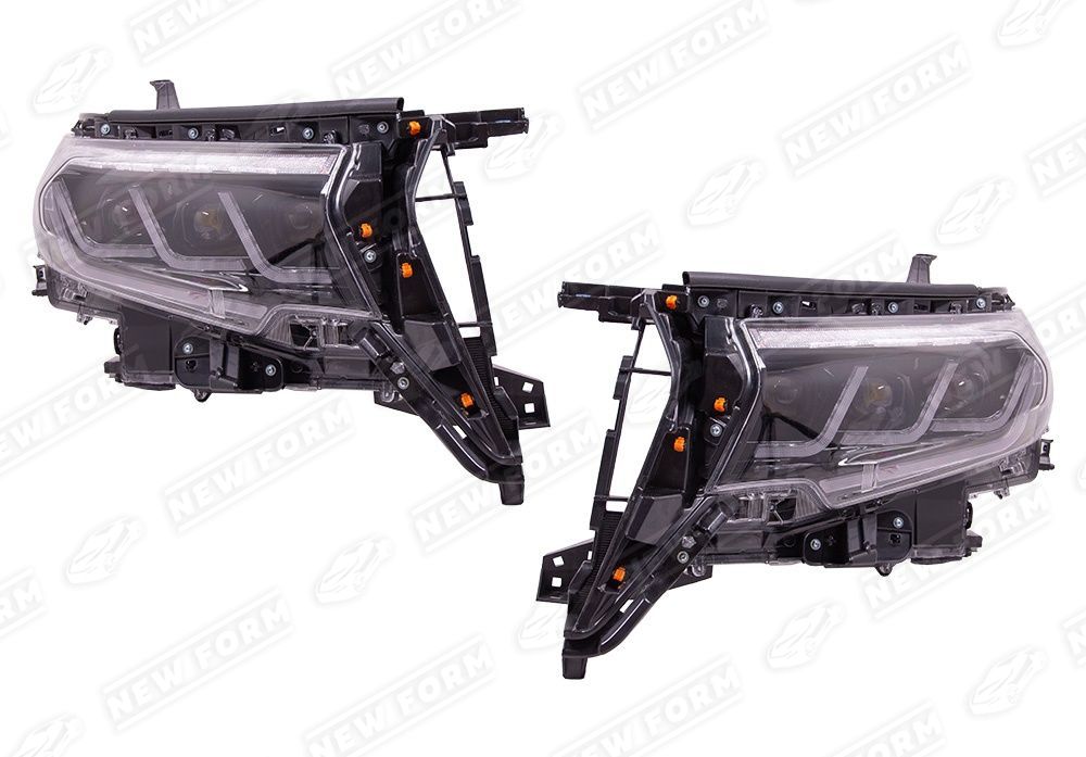 Передние фары для автомобилей Toyota Land Cruiser Prado 150. Данный комплект передних фар предназначен для установки на автомобили Toyota Land Cruiser Prado 150 с 2017 года выпуска. Фары устанавливаются четко в штатные места автомобиля без доработок. Весь необходимый для установки комплекта передних фар крепеж и проводка для подключения входит в комплект.