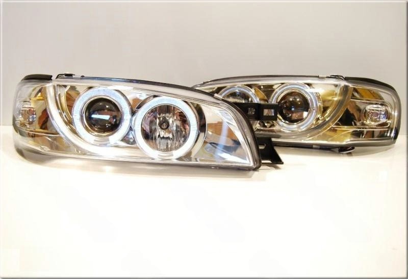 —Subaru Impreza GC, GF (93-01) фары передние хромированные, со светящимися ободками и светодиодами, комплект 2 шт.