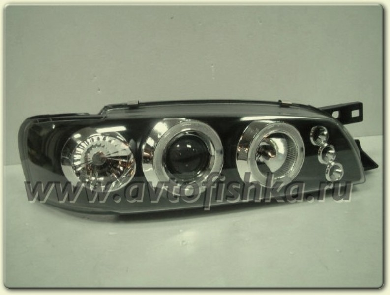 —Subaru Impreza GS, GF (93-00) фары передние черные, со светящимися ободками и светодиодами, комплект 2 шт.
