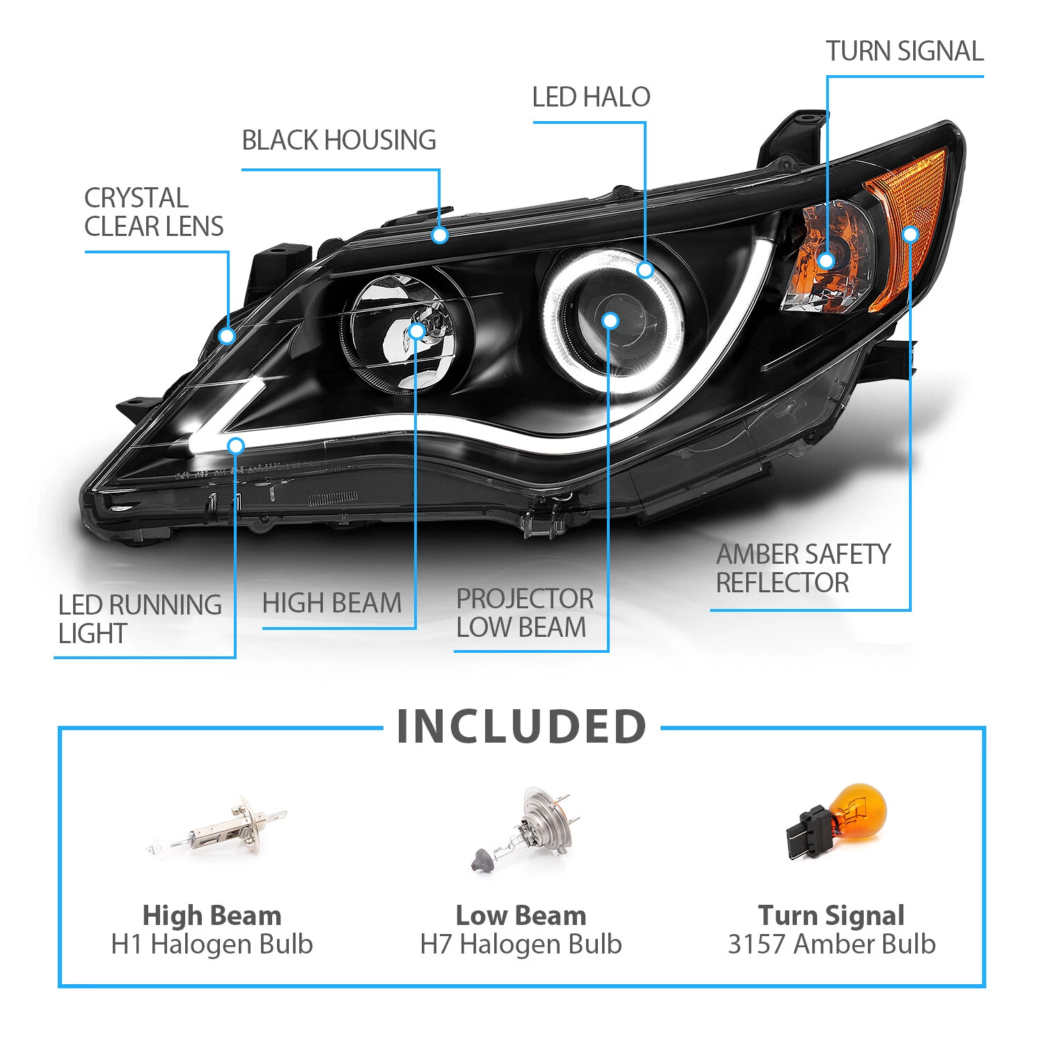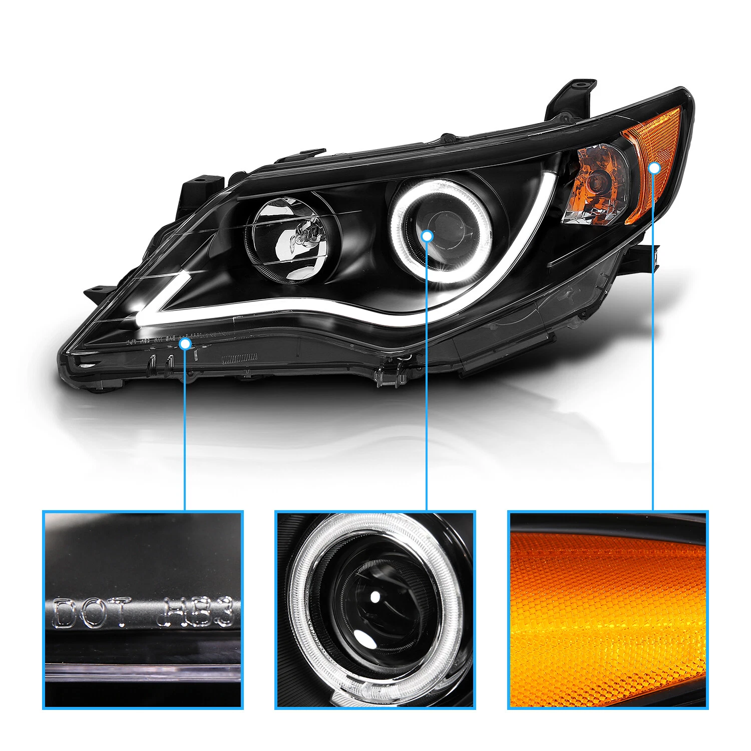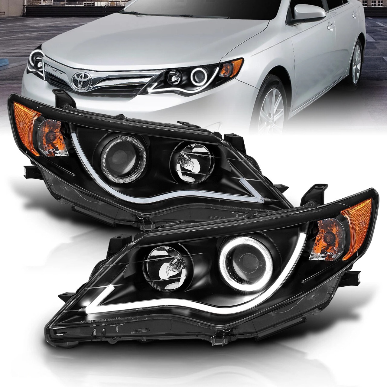 Передние тюнинговые фары для Toyota Camry XV50 (2012-2014) | Стиль Audi R8 | LED-лента | Черный корпус