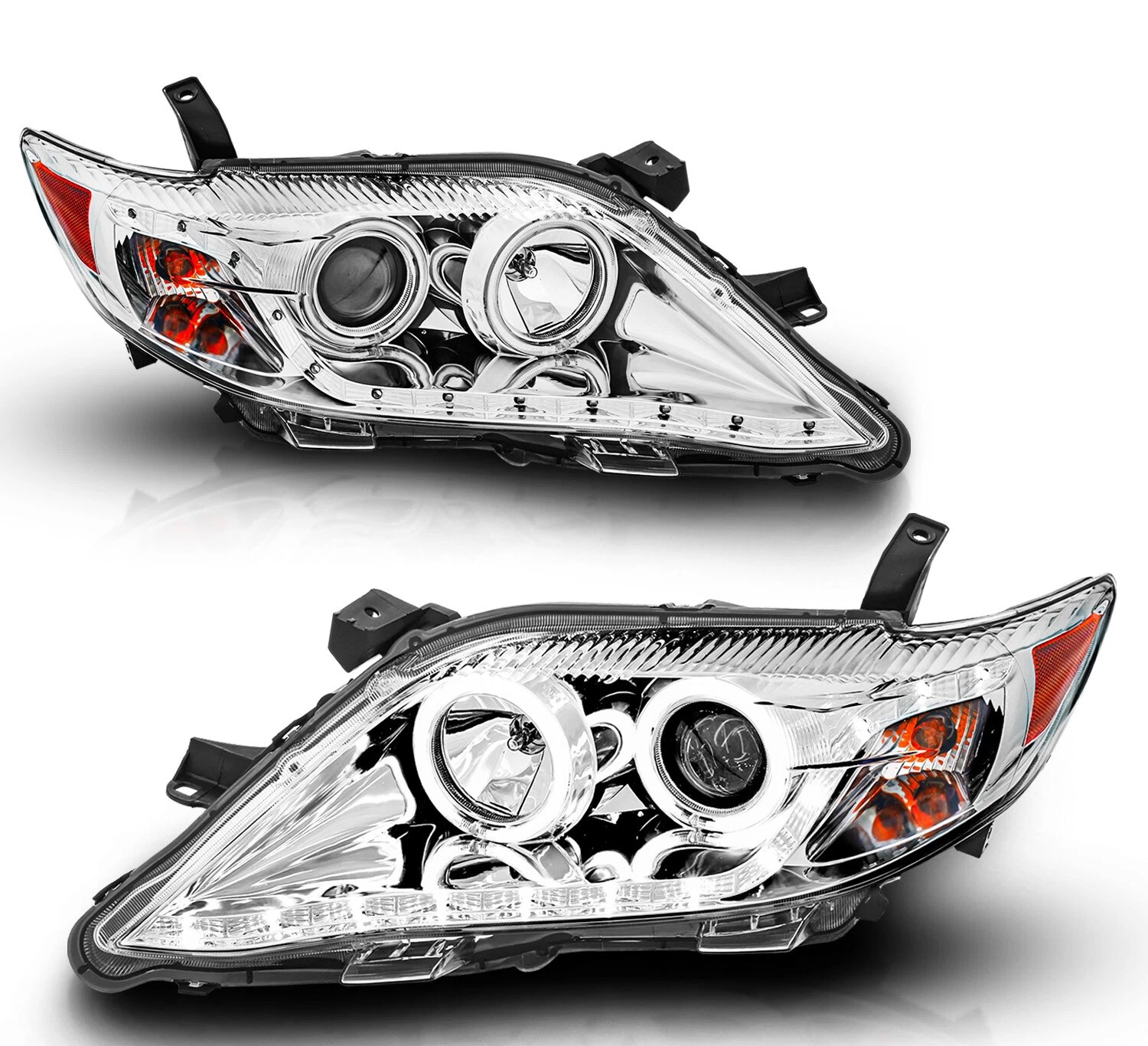 Обновите внешний вид вашего Toyota Camry с этими хромированными фарами, оснащенными светодиодной подсветкой и ДХО!