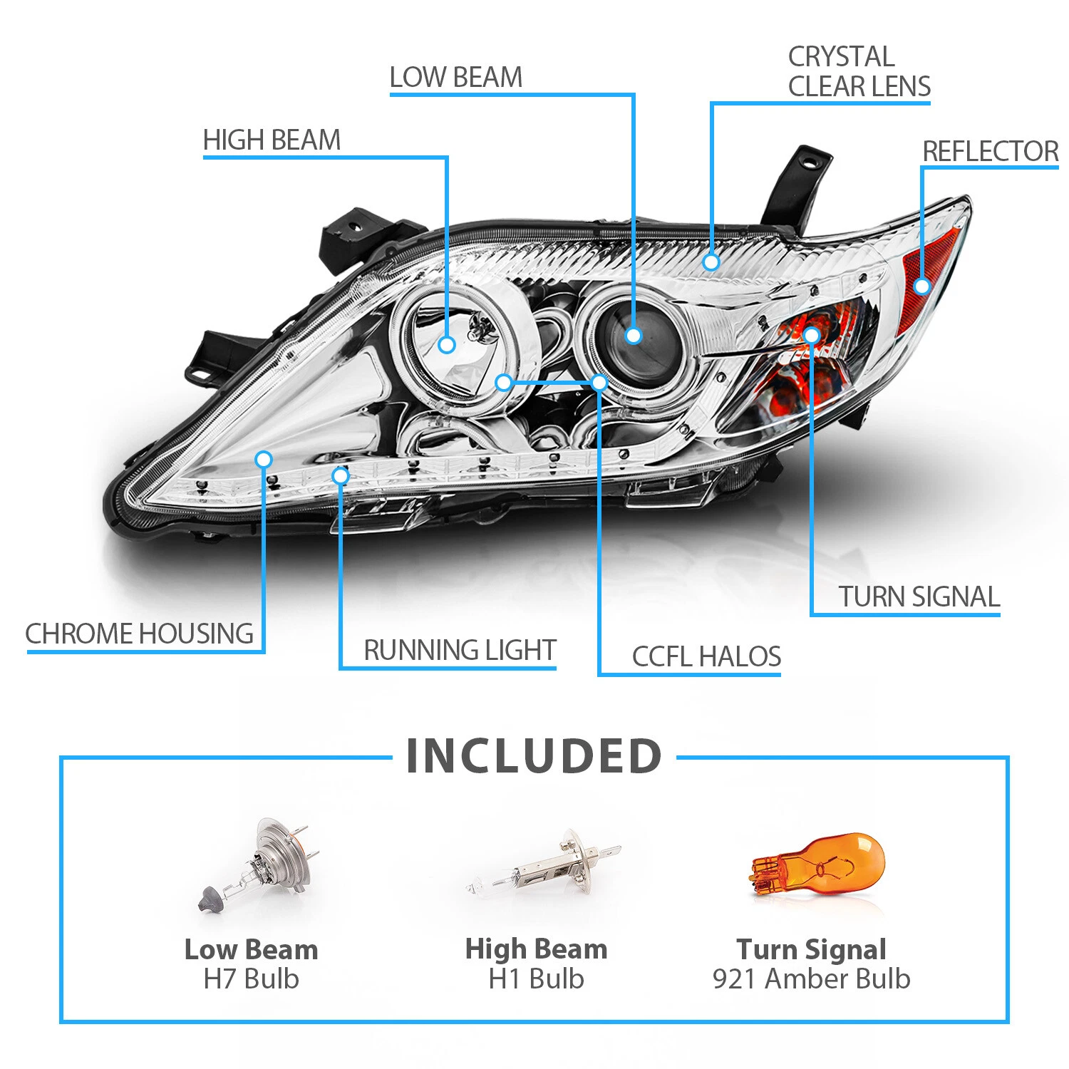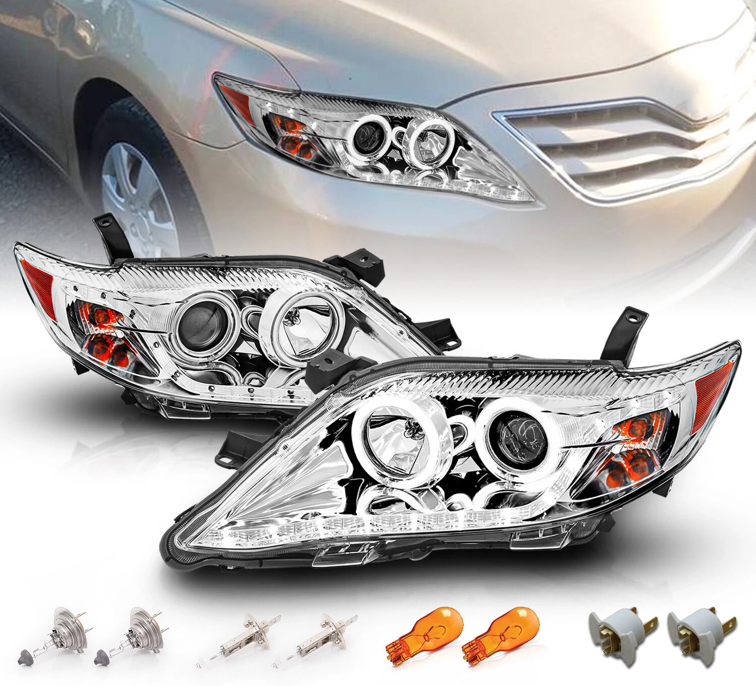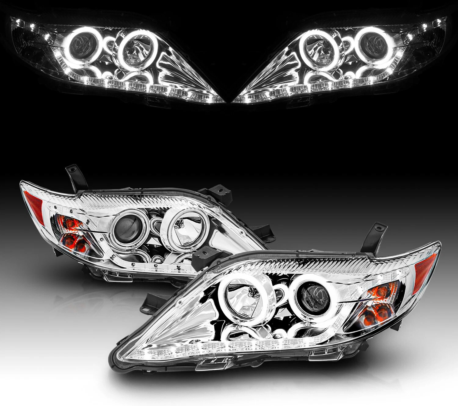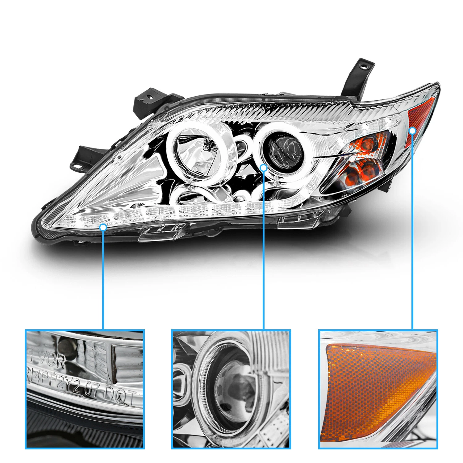 Передние фары с ангельскими глазками для Toyota Camry (2010-2011) | Хромированный корпус | Проекторная оптика