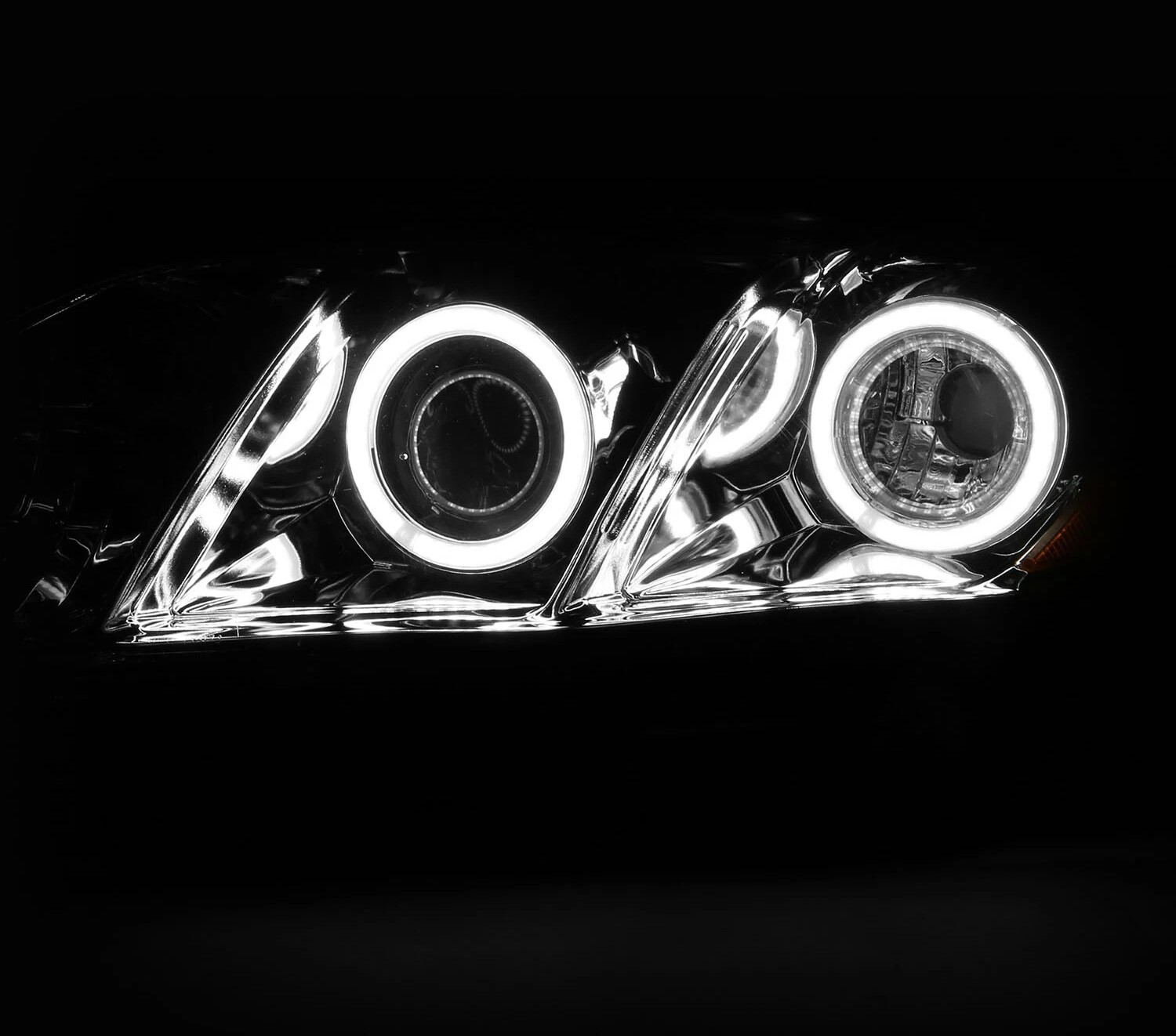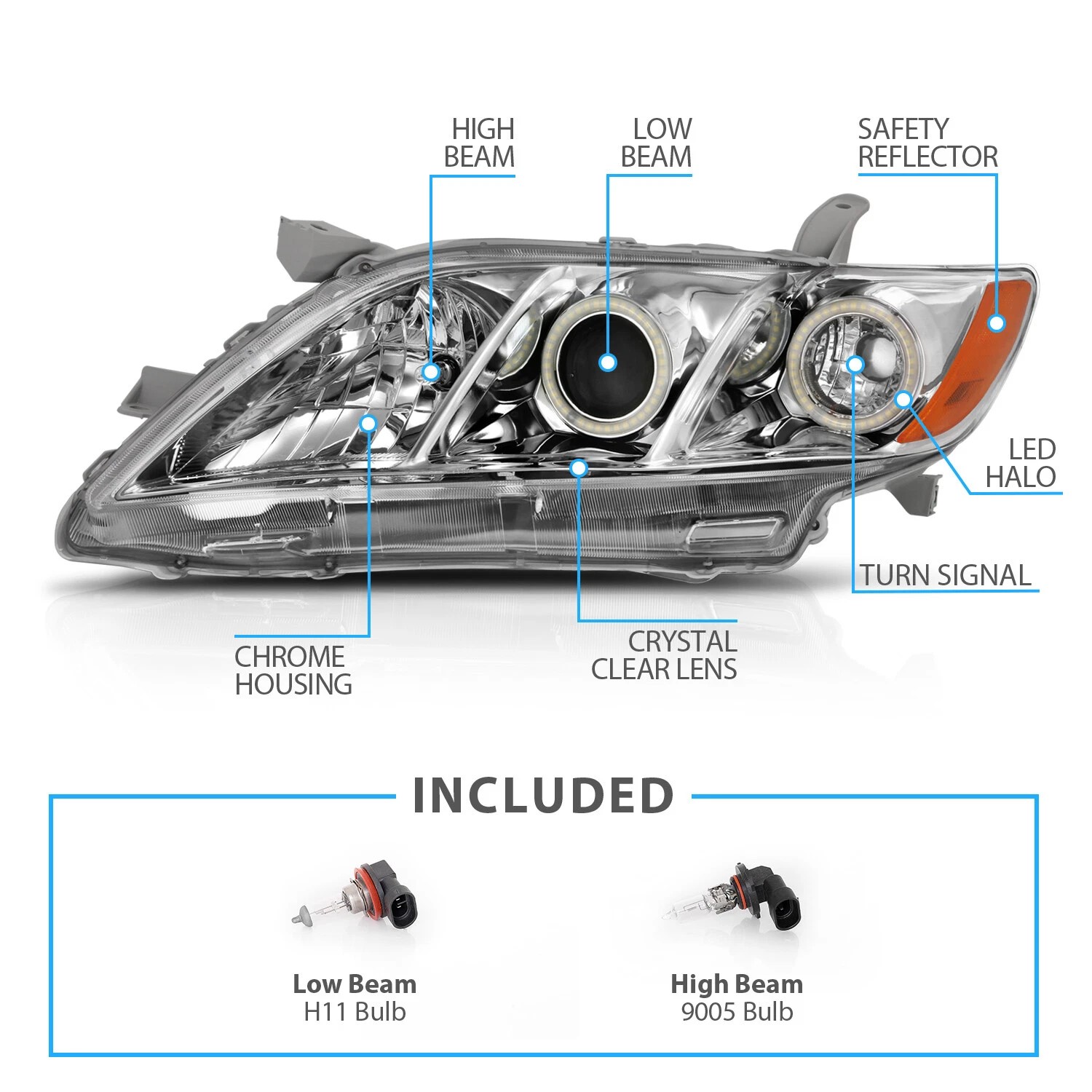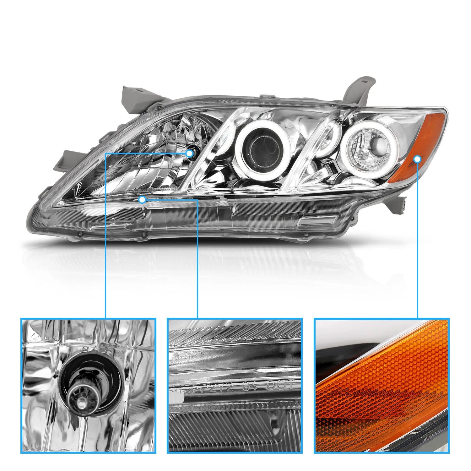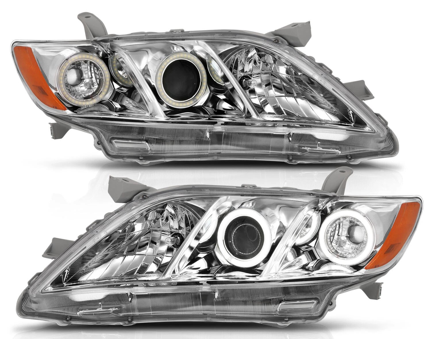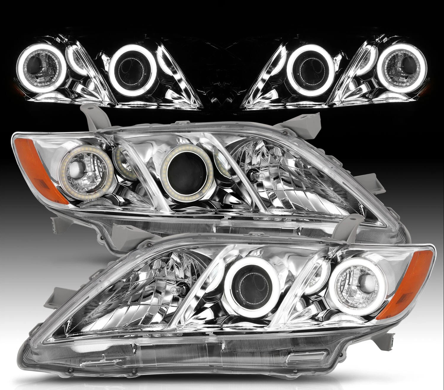 Передние фары с LED ободками для Toyota Camry (2007-2009) | Хромированный корпус | Проекторная оптика