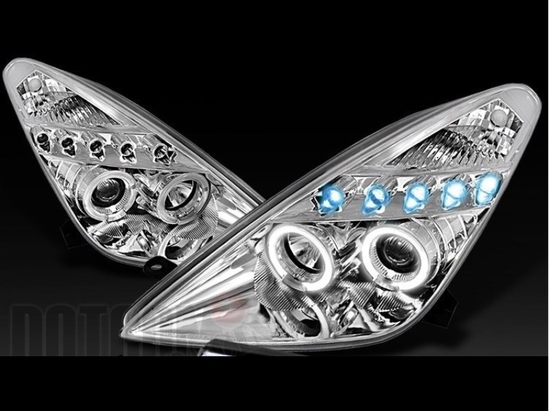 —Toyota Celica (00-05) фары передние линзовые хромированные, со светящимися ободками и светодиодной подсветкой, комплект 2 шт.