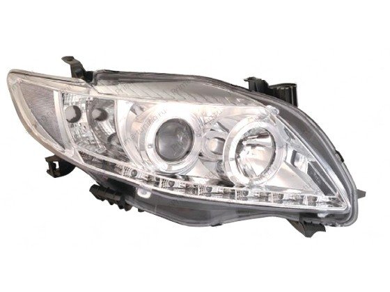 Toyota Corolla (2011-) фары передние линзовые хромированные, со светящимися ободками и подсветкой DRL, комплект 2 шт.