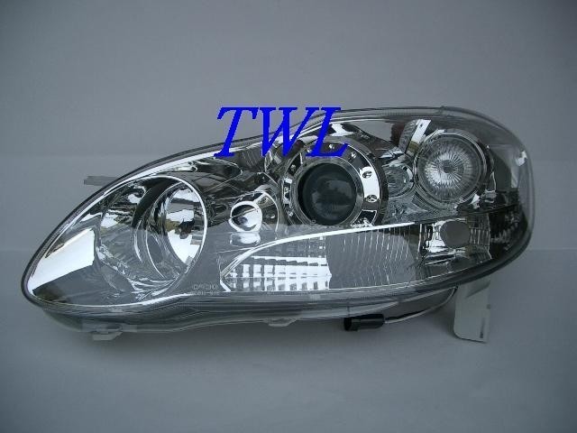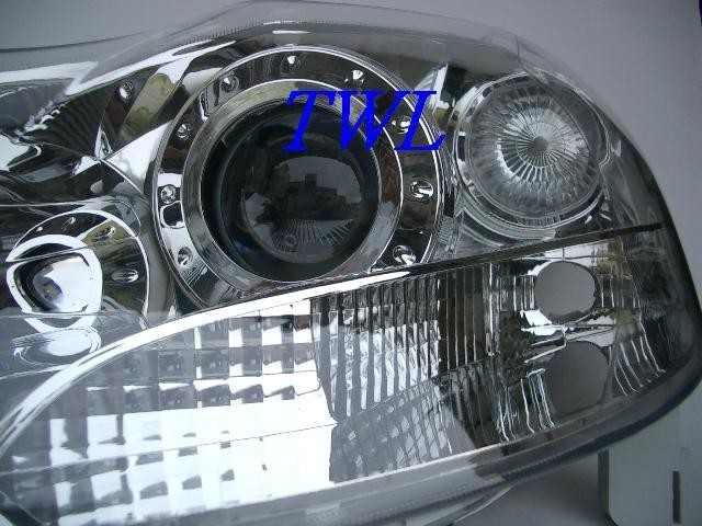 Toyota Corolla Altis (01-04) USA передние фары линзовые хромированные, со светящимися ободками, комплект 2 шт.