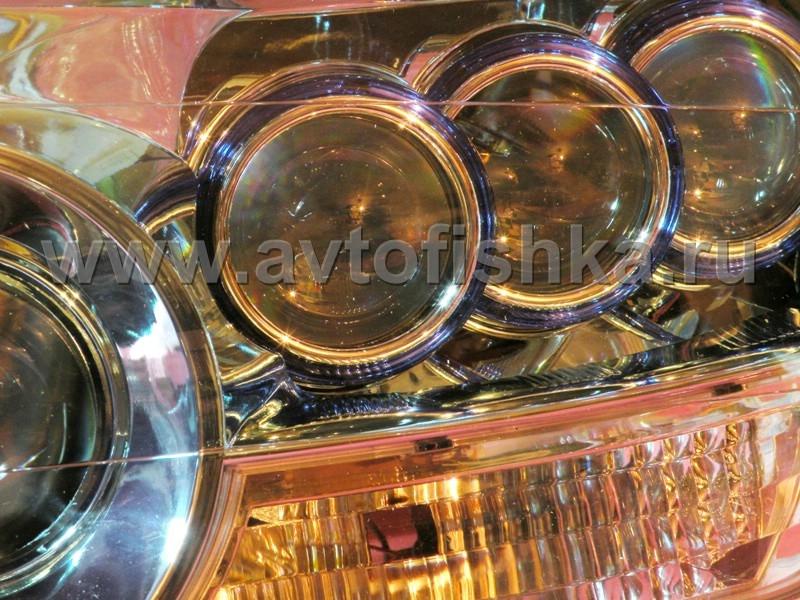 На нашем сайте предcтавлена новая линзовая оптика на Land Cruiser 200. Фары на Toyota Land Cruiser 200 имеют поликарбонатное стекло - это прозрачный и легкий пластик, который в 200 раз прочнее стекла, имеет хорошие оптические свойства и обладает низкой теплопроводностью. Фары для Land Cruiser 200 имеют эффектный внешний вид, что создается благодаря тройной линзе ближнего света в стиле Lexus LS600. Имеется возможность установки в фары ксеноновых ламп, являющихся наиболее высокоэффективными на сегодняшний день. Распределение светового пучка можно отрегулировать при помощи имеющегося электрокорректора.