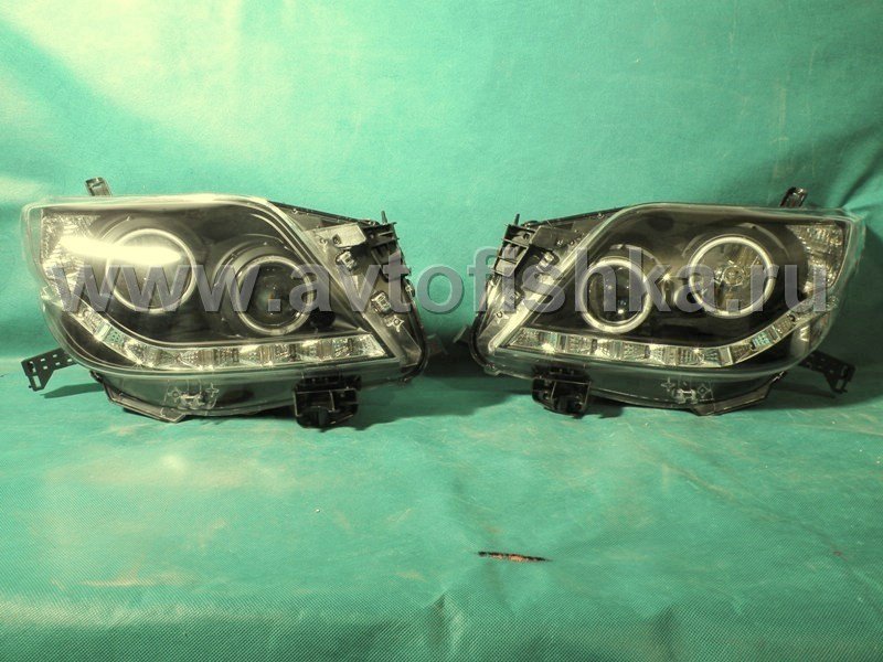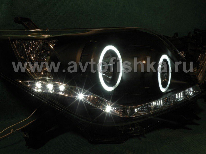 Toyota Land Cruiser Prado 150 (2010-) фары передние линзовые черные со светящимися ободками и светодиодной подсветкой, комплект 2 шт.