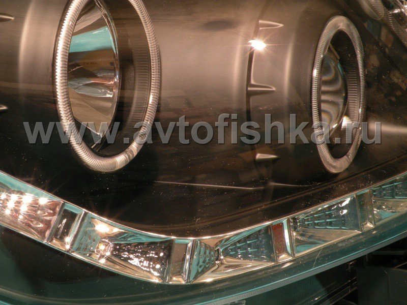 —Toyota Land Cruiser Prado 150 (2010-) фары передние линзовые черные со светящимися ободками и светодиодной подсветкой, комплект 2 шт.