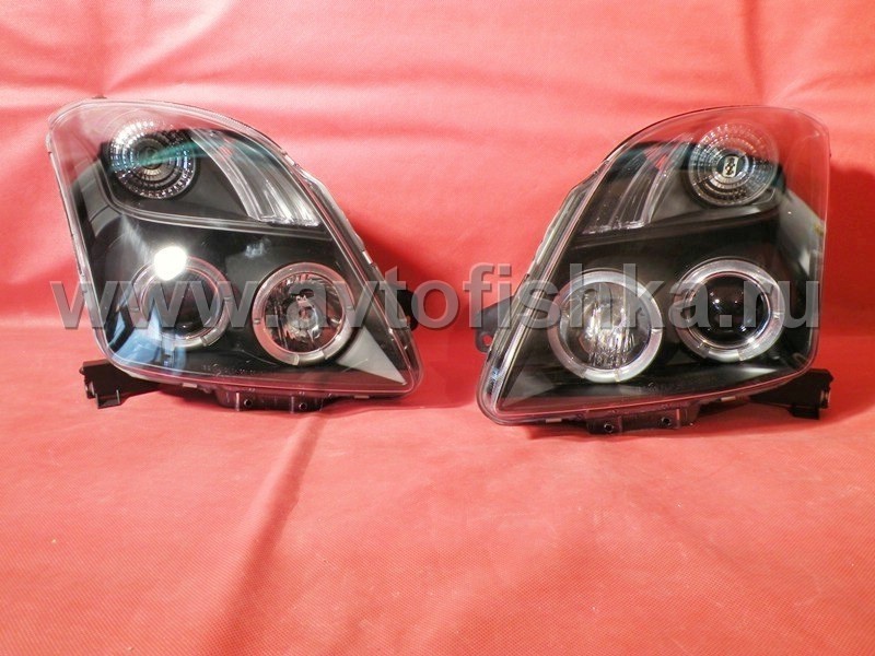 Toyota Yaris P2 (05-) фары передние линзовые черные, со светящимися ободками, комплект 2 шт.