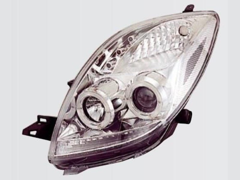 Toyota Yaris P2 (05-) передние фары линзовые хромированные, со светящимися ободками, комплект 2 шт.