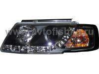 —Volkswagen Passat B5 (97-00) фары передние линзовые черные, со светодиодной подсветкой, комплект 2 шт.