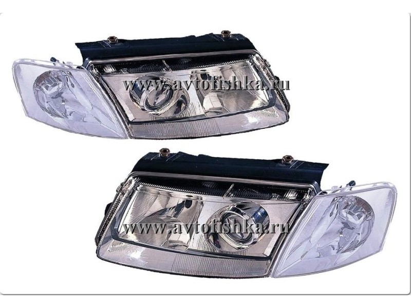 Volkswagen Passat B5 (97-00) фары передние линзовые хромированные с поворотниками, под корректор, комплект 2 шт.