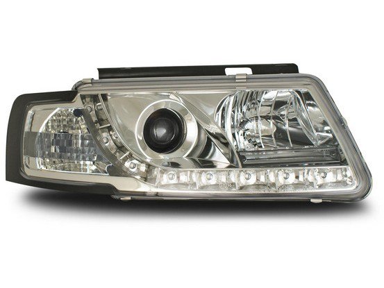 Volkswagen Passat B5 (97-00) фары передние линзовые хромированные, со светодиодной подсветкой, комплект 2 шт.