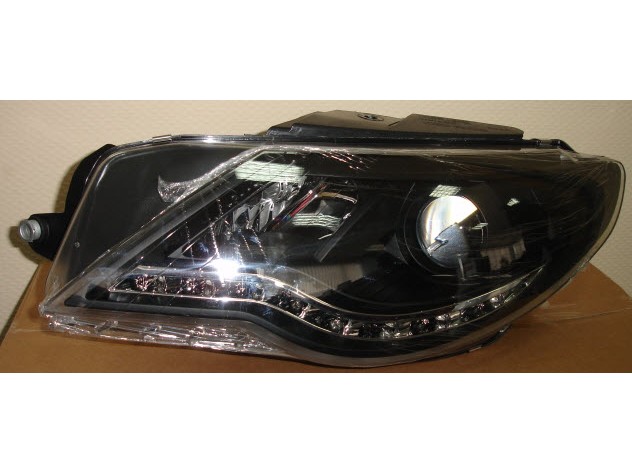 Volkswagen Passat CC (09-) фары передние линзовые черные с подсветкой DRL