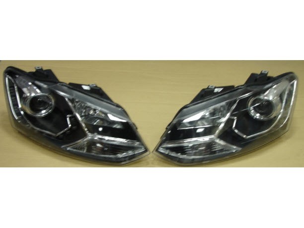 —Volkswagen Polo (10-) передние черные линзовые фары со светодиодной подсветкой DRL с CCFL ободками, с эл. корректором, комплект 2 шт.