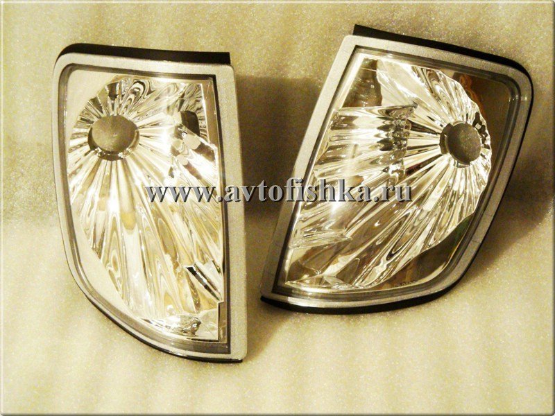 —Mercedes W124 (84-95) поворотники угловые прозрачные хромированные, комплект 2 шт.