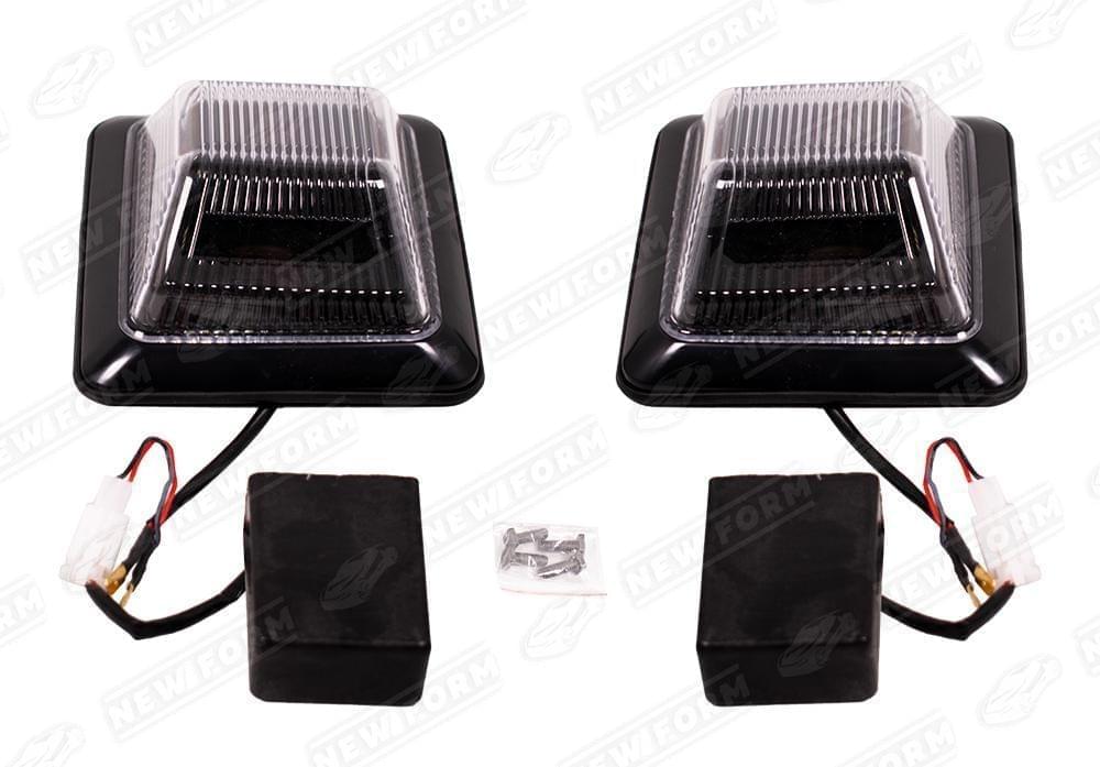 Поворотники светодиодные дизайн 2018 года черные для автомобилей Мерседес Гелендваген. Данный комплект поворотников предназначен для установки на автомобили Mercedes G-class W463 с 1990 по 2018 год выпуска. Поворотники устанавливаются четко в штатные месте автомобиля без доработок. Поворотники дизайн 2018 года выполнены в черном цвете.