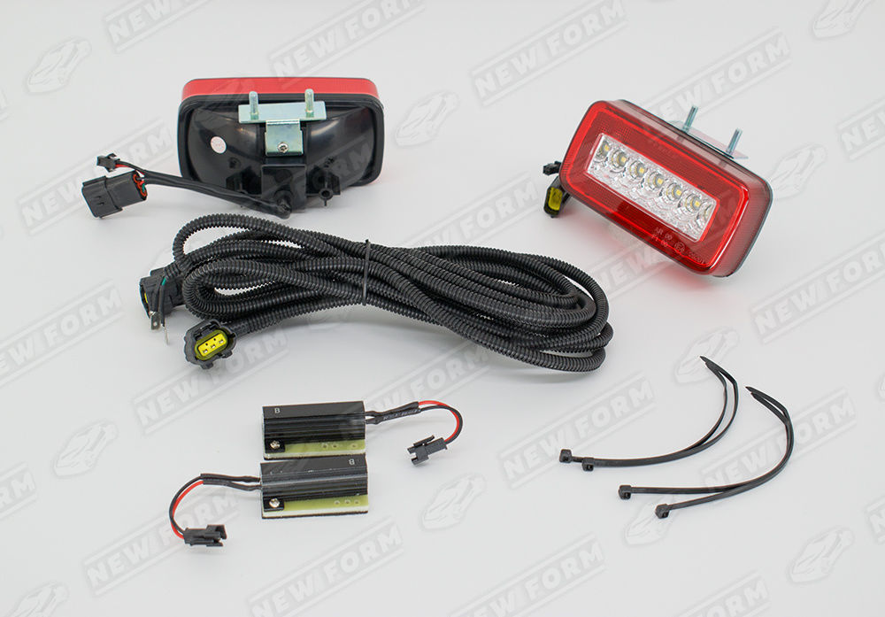 В комплект входит: 2 светодиодных противотуманных фонаря, проводка для подключения, обманки бортового компьютера, комплект крепежа.