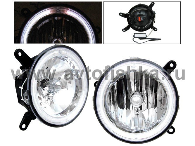 Ford Mustang (05-08) фары противотуманные хромированные, со светящимися ободками, комплект 2 шт.