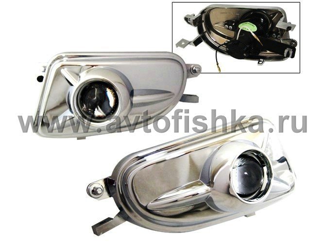 Mercedes W210 (00-02), R129, R170 SLK (96-03), W208 (98-03), W202 (94-00) фары противотуманные линзовые хромированные, комплект 2 шт.