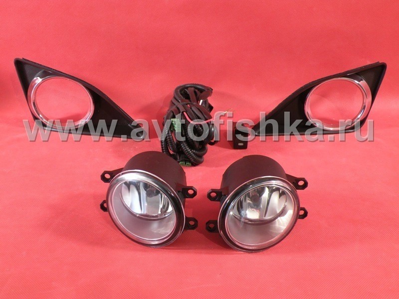 Полный установочный комплект противотуманных фар для Toyota Corolla 150 с 2006 до 2010 года включает в себя противотуманные фары, рамки в передний бампер, электропроводку и кнопку включения противотуманного света.