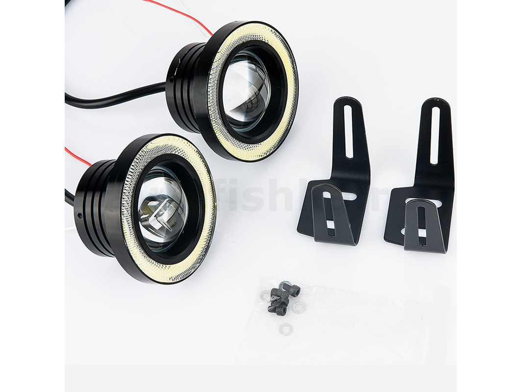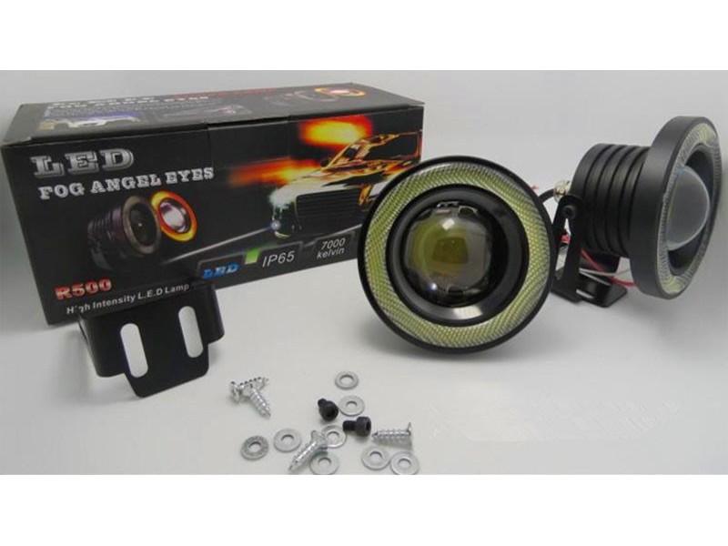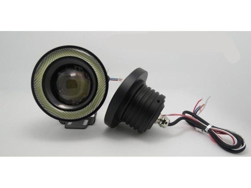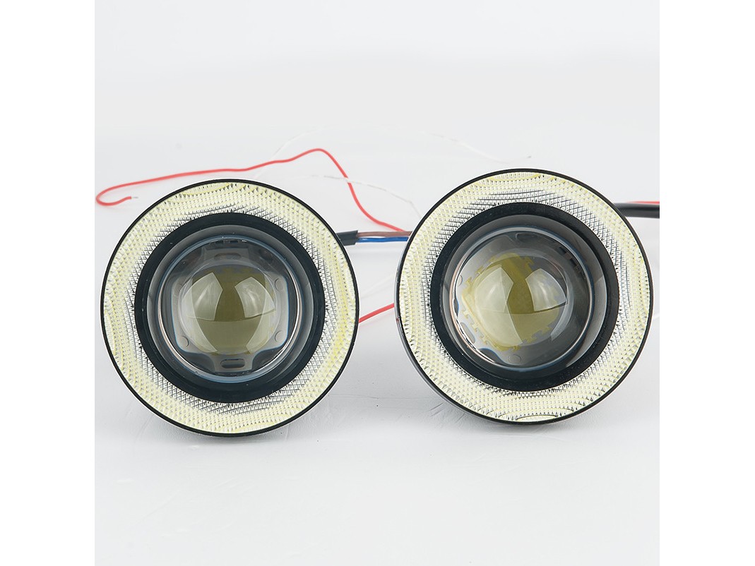 Универсальные линзовые противотуманные фары с ангельскими глазками COB, комплект 2 шт.