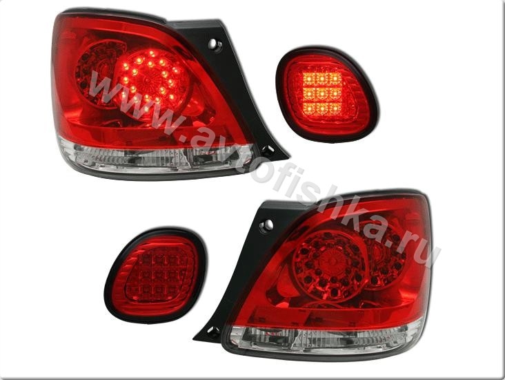 Lexus GS300, GS430 (97-04)задние светодиодные фонари красно-хромированные, комплект лев.+прав.