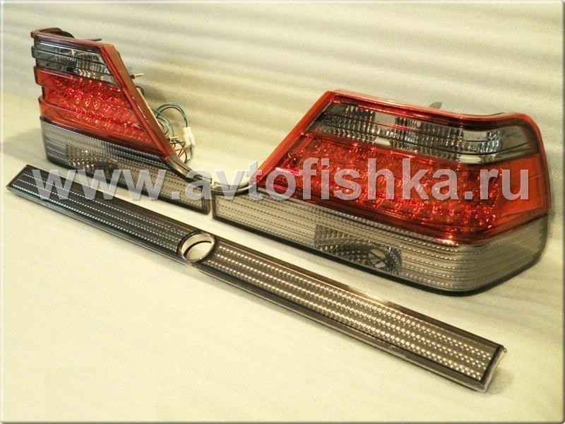 —Mercedes S W140 (92-99) фонари задние светодиодные красно-тонированные, с центральным молдингом, комплект лев.+прав.