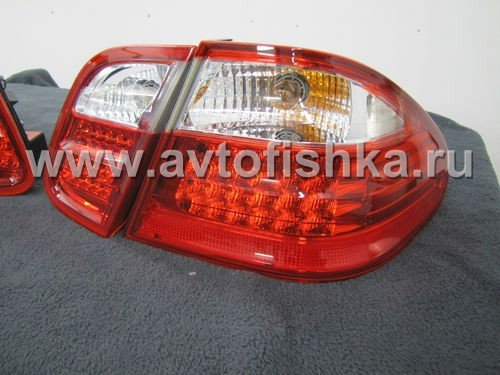 —Mercedes W208 CLK (97-03) фонари задние, красно-хромированные светодиодные, комплект лев.+ прав.