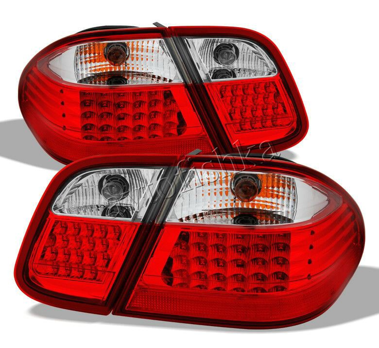 Mercedes W208 CLK (97-03) фонари задние, красно-хромированные светодиодные, комплект лев.+ прав.