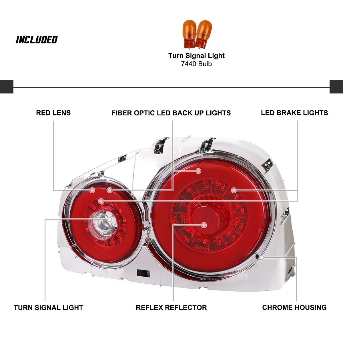 Придайте задней части вашего легендарного Nissan Skyline GT-R R34 современный и агрессивный облик с этим комплектом светодиодных фонарей от бренда Eagle Eyes. Хромированный корпус и красные линзы в европейском стиле создают яркий контраст, а встроенные светодиодные стоп-сигналы и светодиодные полосы заднего хода обеспечивают превосходную видимость и мгновенную реакцию. Задние LED-фонари разработаны специально для купе R34 (1999–2002) и подключаются к штатным разъемам по принципу "включи и работай". Комплект включает все необходимые лампы для указателей поворота — готовое решение для кардинального преображения вашего автомобиля.