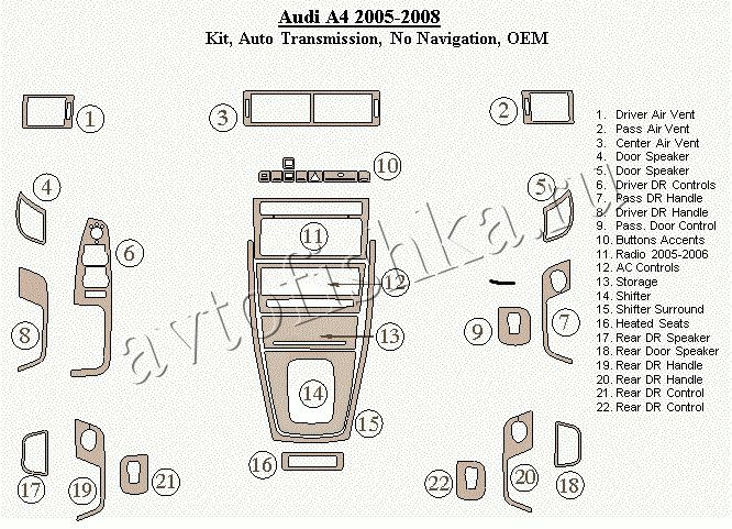 Декоративные накладки на панель приборов | Тюнинг салона для Audi A4 2005-2008 АКПП.