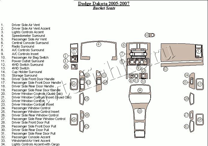 Декоративные накладки на панель приборов | Тюнинг салона для Dodge Dakota 2005-2007 Bucket Seats
