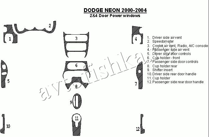 Декоративные накладки на панель приборов | Тюнинг салона для Dodge Neon 2000-н.в. Power Windows, 12 элементов.