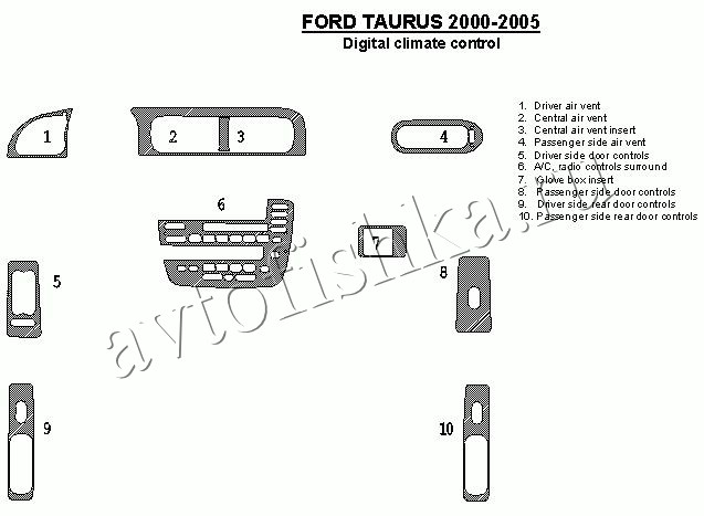 Декоративные накладки на панель приборов | Тюнинг салона для Ford Taurus 2000-2005 с авто Climate контроль, 11 элементов.