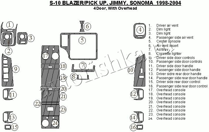 Декоративные накладки на панель приборов | Тюнинг салона для GMC Jimmy 1998-2004 4 двери, с Overhead Console, 24 элементов.