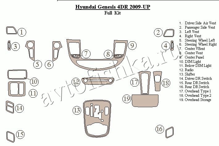Декоративные накладки на панель приборов | Тюнинг салона для Hyundai Genesis 4DR 2009-н.в.