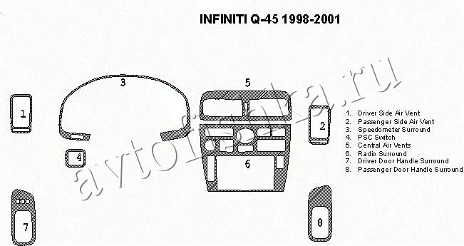 Декоративные накладки на панель приборов | Тюнинг салона для Infiniti Q45 1998-2001 Соответствие штатной комплектации