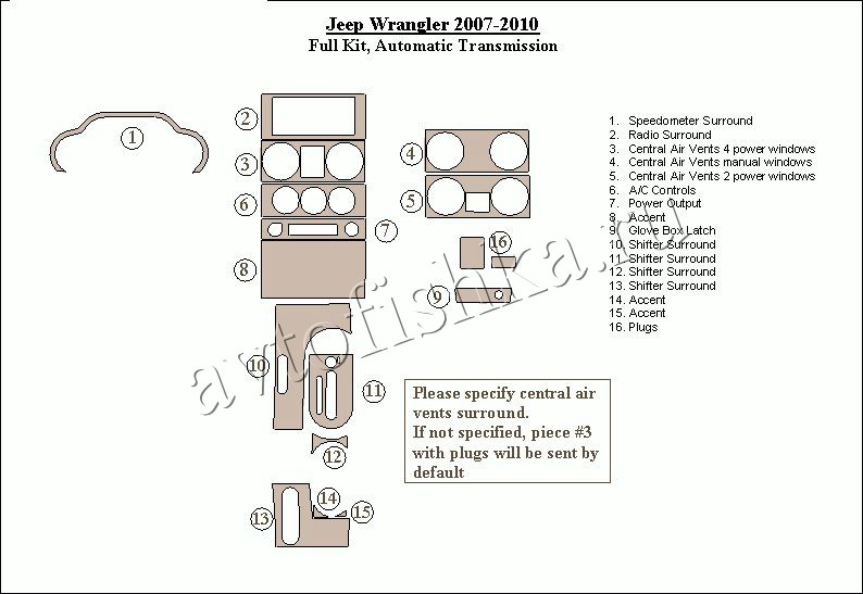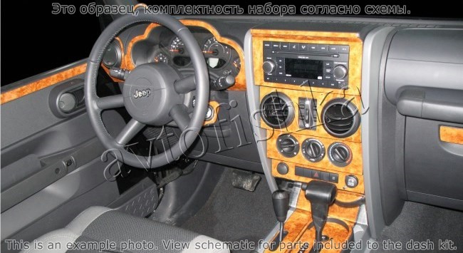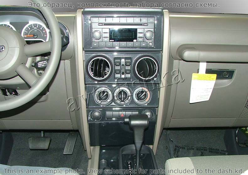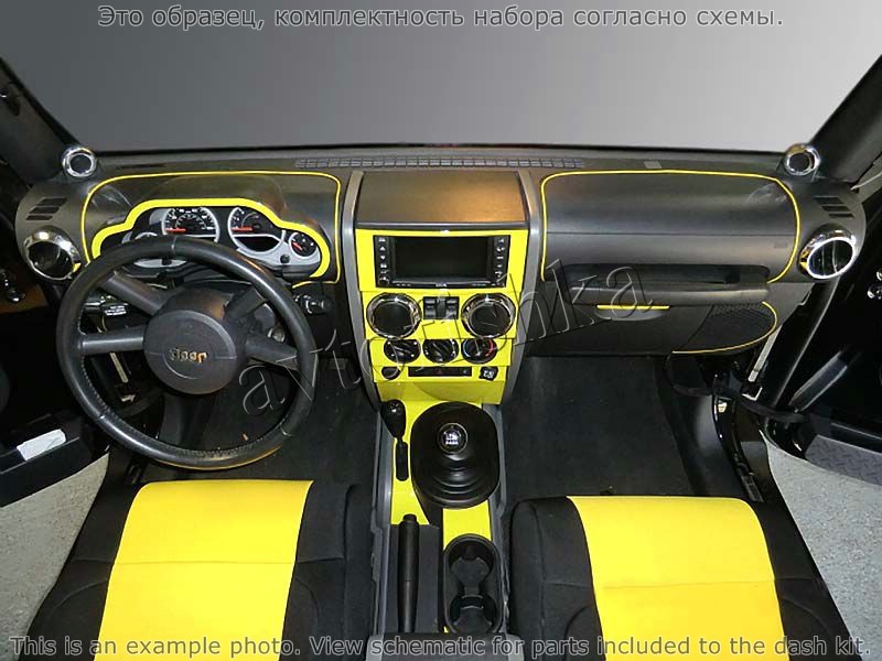 Декоративные накладки на панель приборов | Тюнинг салона для Jeep Wrangler 2007-2010 полный набор накладок в салон, Автоматическая коробка передач