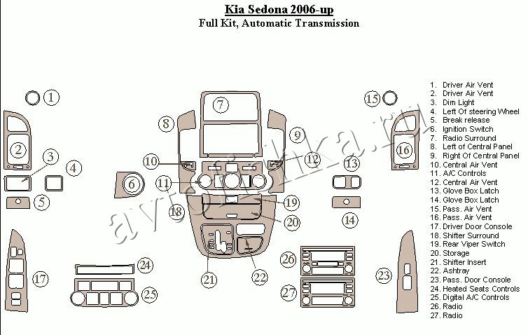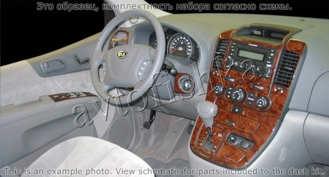 Декоративные накладки на панель приборов | Тюнинг салона для Kia Sedona 2006-н.в. полный набор накладок в салон, Автоматическая коробка передач