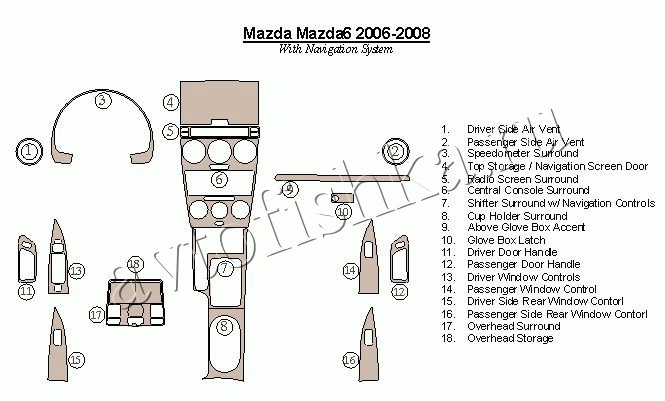 Декоративные накладки на панель приборов | Тюнинг салона для Mazda 6 2006-2008 с навигацией