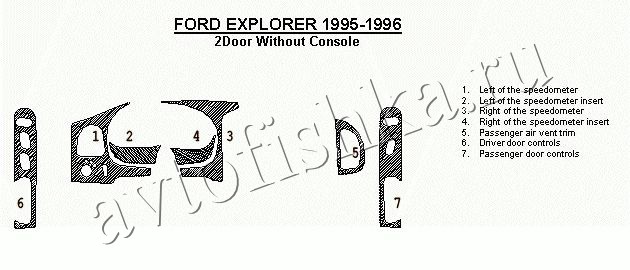 Декоративные накладки на панель приборов | Тюнинг салона для Mercury Mountaineer 1995-1996 2 двери, базовый набор, 7 элементов.