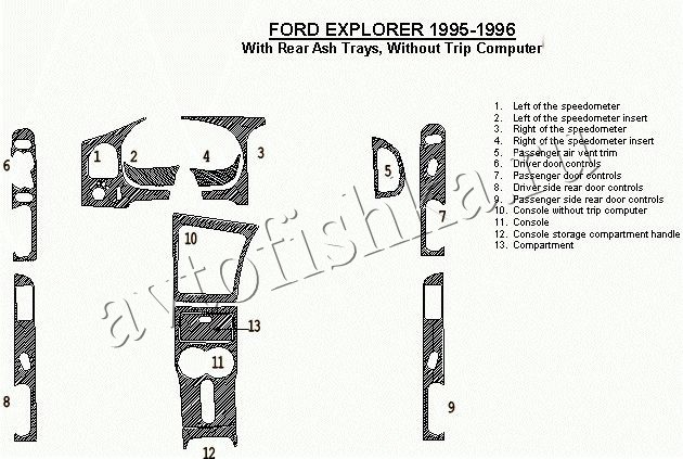 Декоративные накладки на панель приборов | Тюнинг салона для Mercury Mountaineer 1995-1996 4 двери, полный набор накладок в салон, без Trip Computer, с задними пепельницами, 12 элементов.