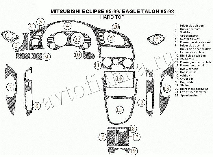 Декоративные накладки на панель приборов | Тюнинг салона для Mitsubishi Eclipse 1995-1999 твердая крыша
