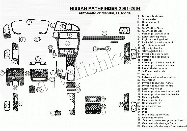 Декоративные накладки на панель приборов | Тюнинг салона для Nissan Pathfinder 2001-2004 LE Model