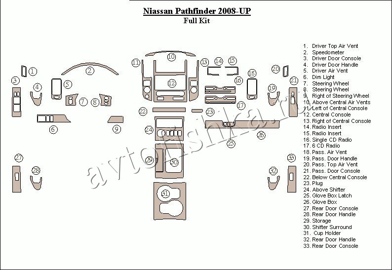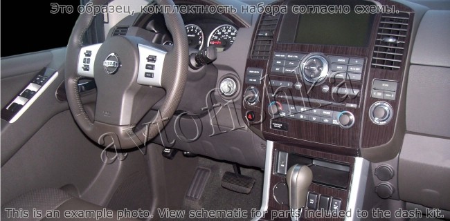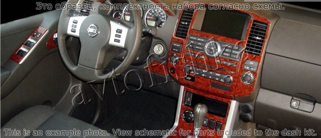 Декоративные накладки на панель приборов | Тюнинг салона для Nissan Pathfinder 2008-н.в. полный набор накладок в салон