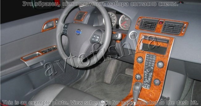 Декоративные накладки на панель приборов | Тюнинг салона для Volvo S40 2004-н.в. полный набор накладок в салон